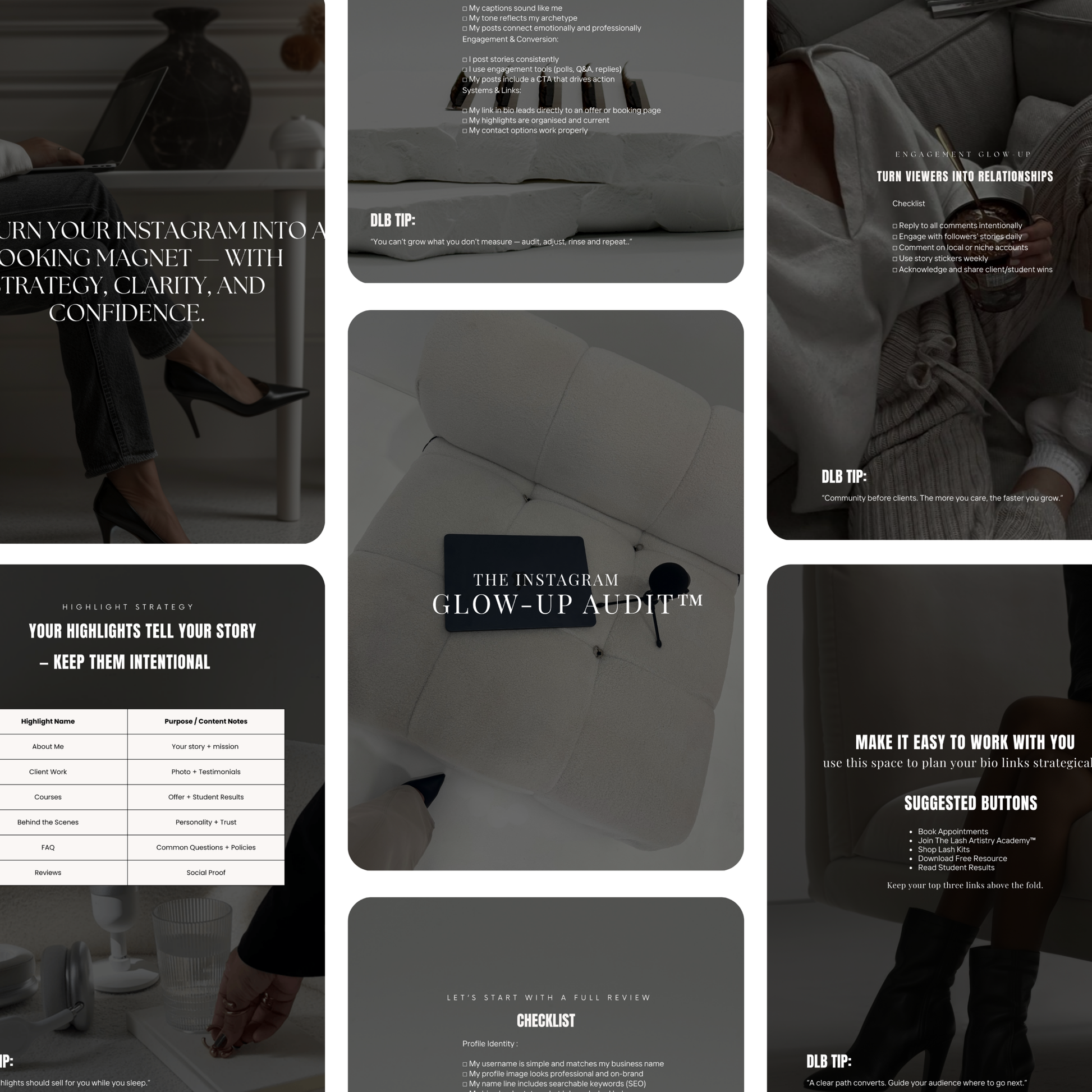 The Instagram Audit & Optimisation Guide™ teaches lash artists how to transform their profile into a professional brand that attracts loyal clients and builds trust.